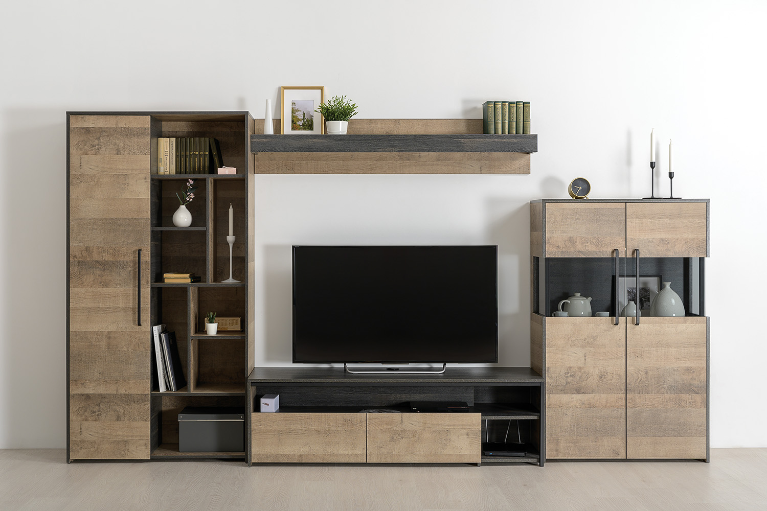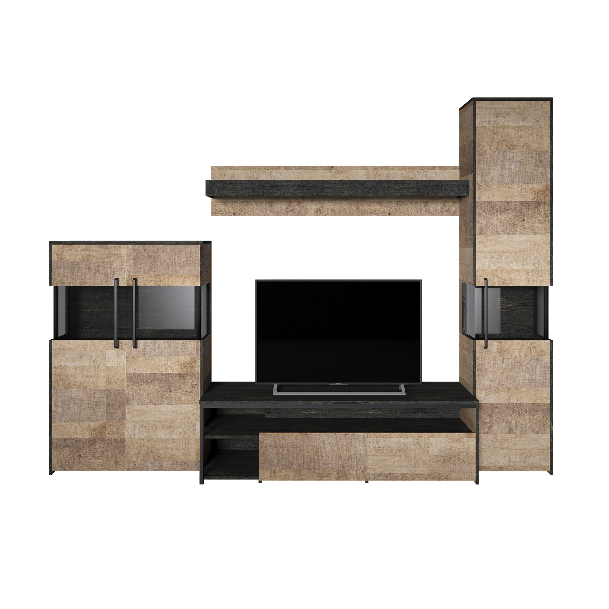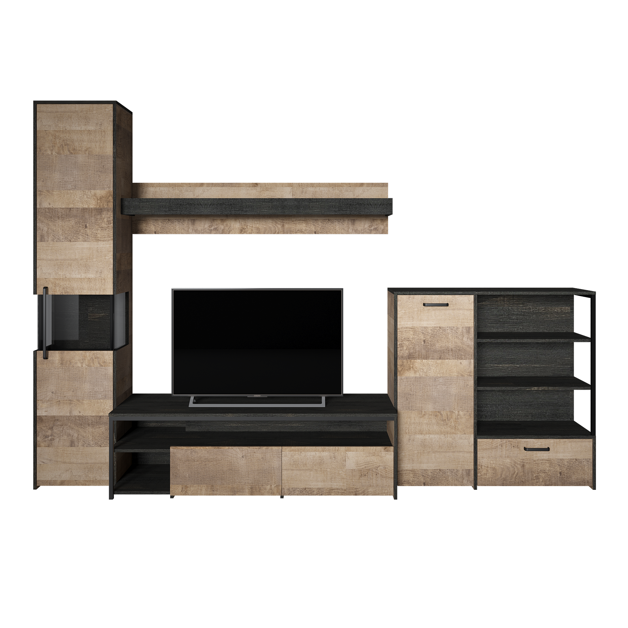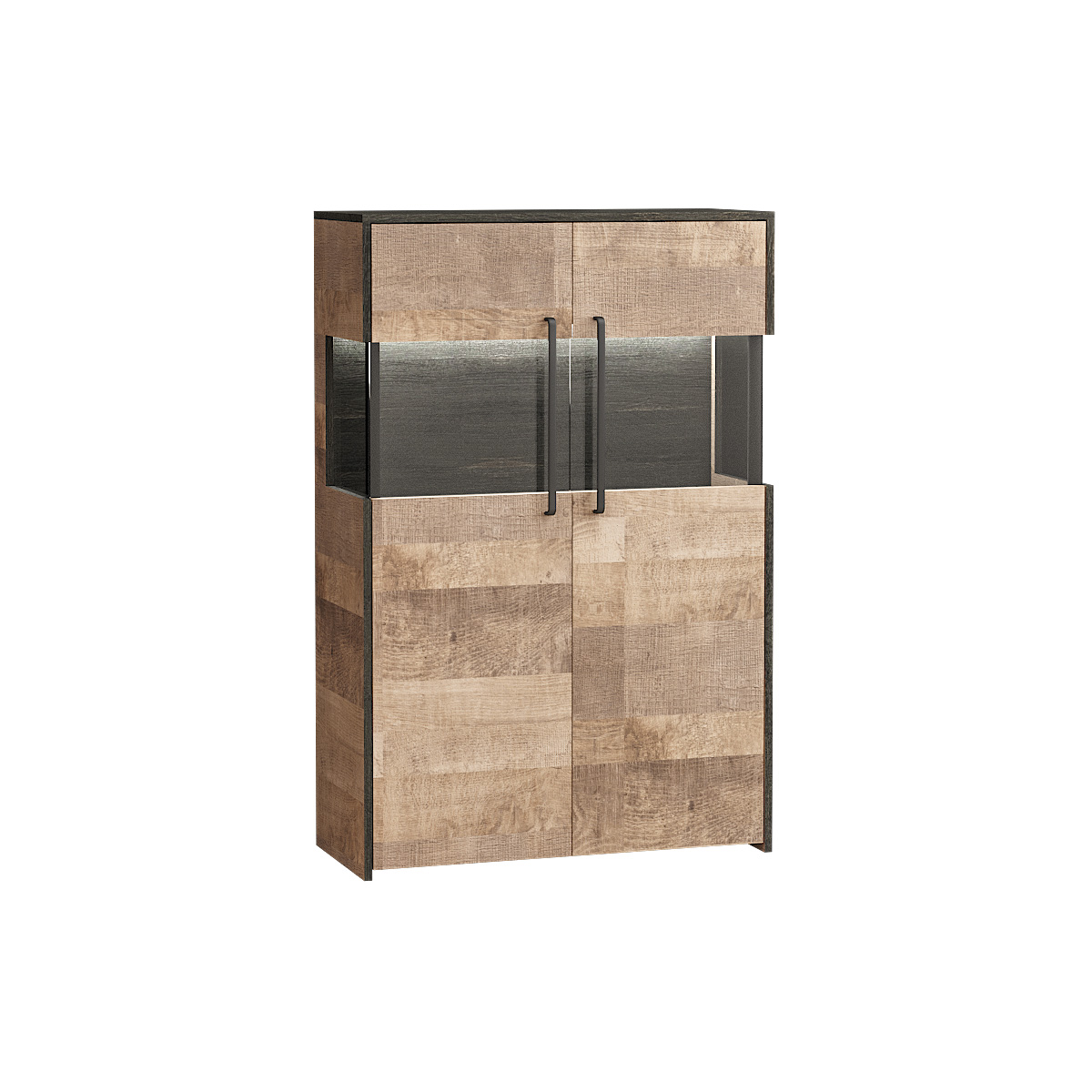 Лицевая фурнитура с тем же покрытием придаёт мебели индустриальную эстетику.