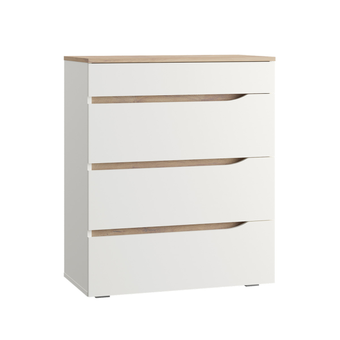 Комод имеет 4 выдвижных ящика, ручки вырезы.