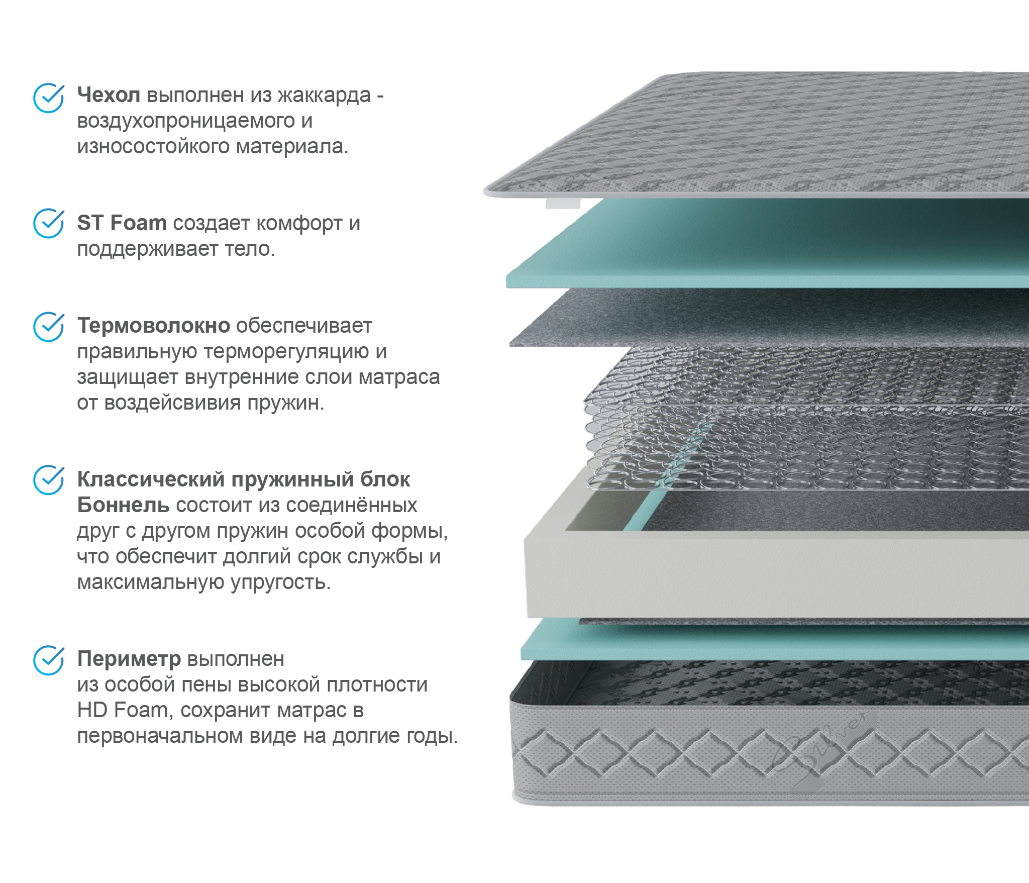 - термоволокна, отделяющего комфортный слой от пружин.