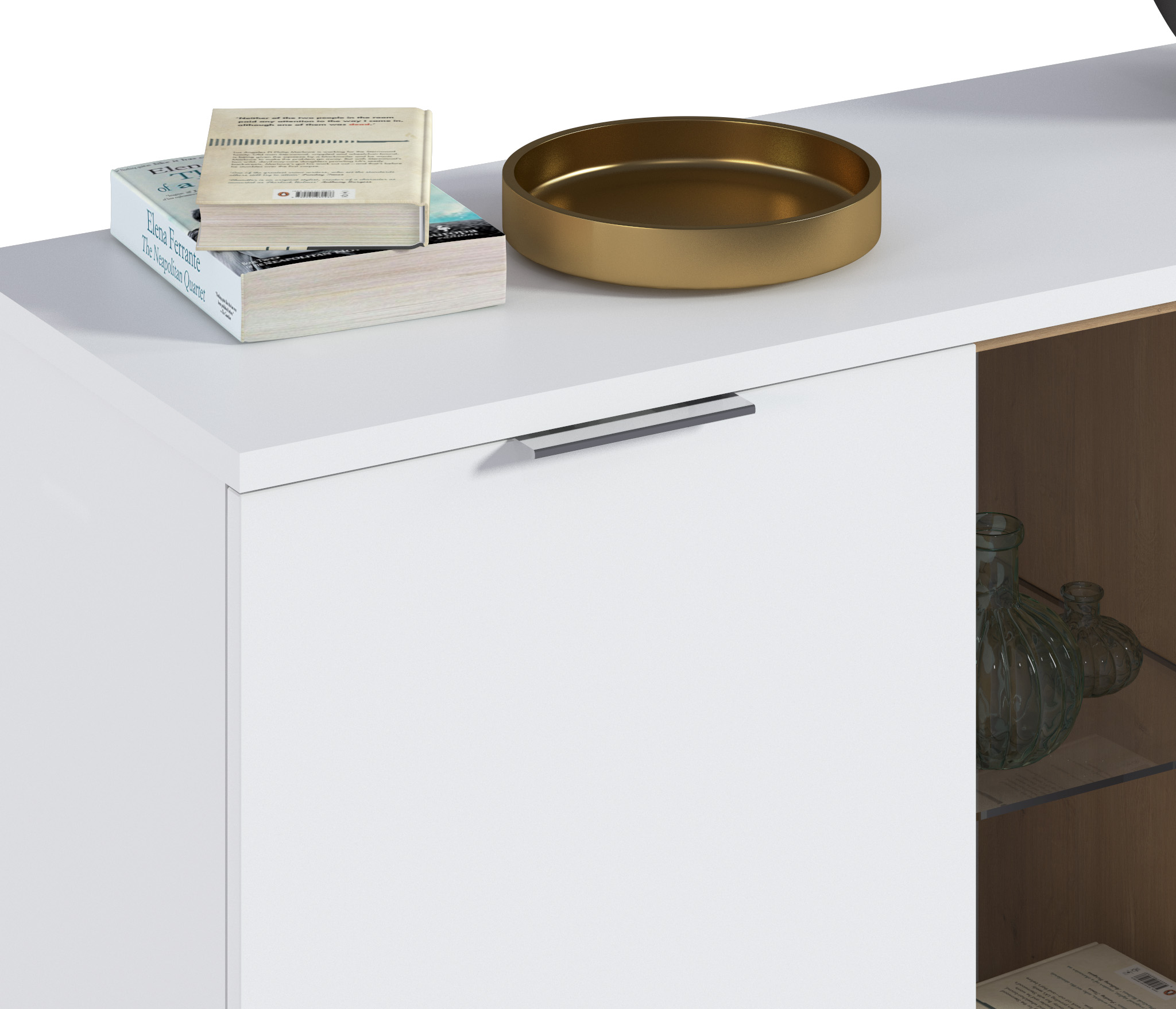 Фасады МДФ белого цвета имеют бархатистое, мягкое на ощупь покрытие «Soft-touch».