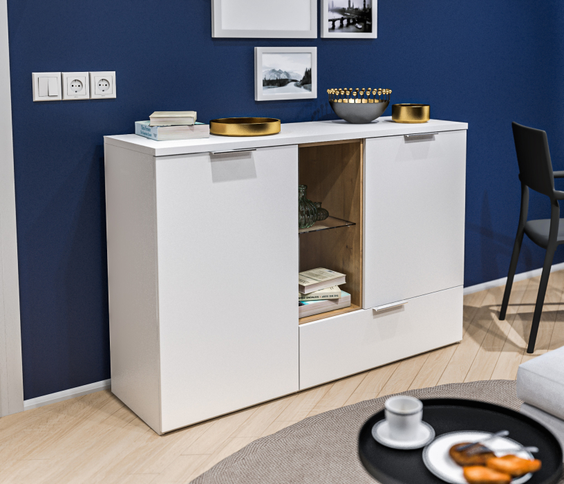 Комод Мальта СБ-3264 Белый,Дуб Гамильтон/МДФ Белый (Белый,Дуб Гамильтон)