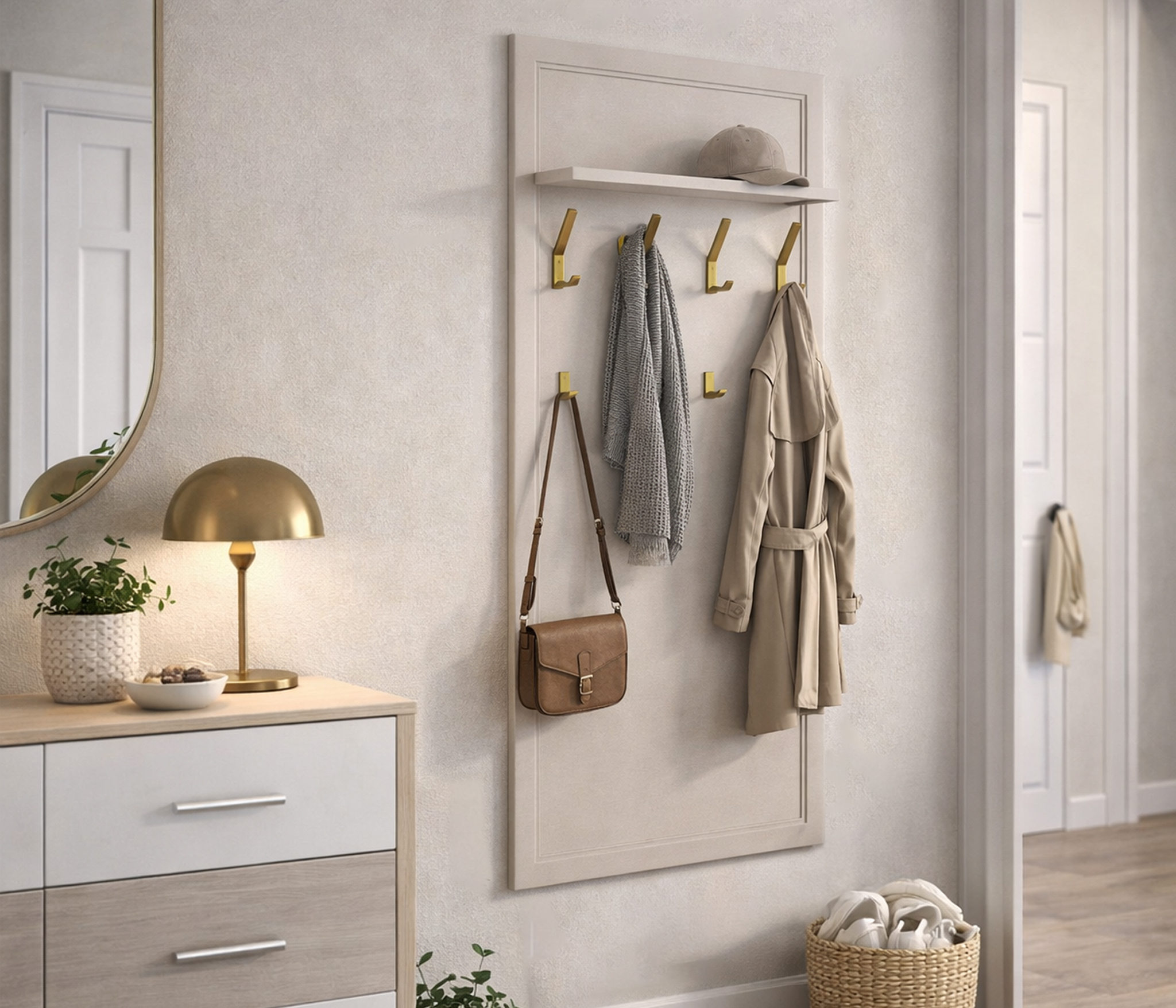 Рекомендуется дополнить вешалку Бруклин СБ-3348 Тумбой Белого цвета (Бруклин СБ-3349). Тумба предоставит дополнительное пространство для хранения обуви, аксессуаров и других предметов, а также создаст завершенный и стильный вид вашей прихожей.